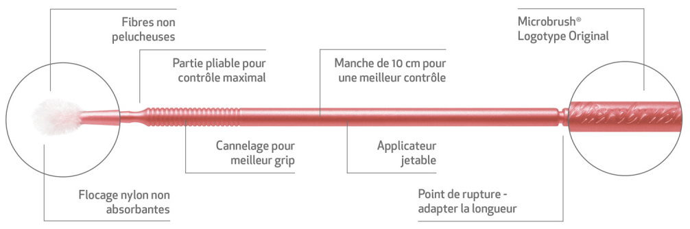 Brossettes jetables avec pointes équipées de fibres non-absorbantes.