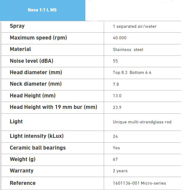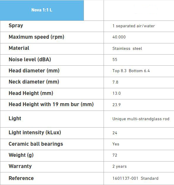 Le NOVA 1:1L, équipé de sa tête et de son corps ultra fin permet au praticien d'avoir un champ de vision beaucoup plus dégagé et un accès à l'arrière de la cavité buccale simplifié.