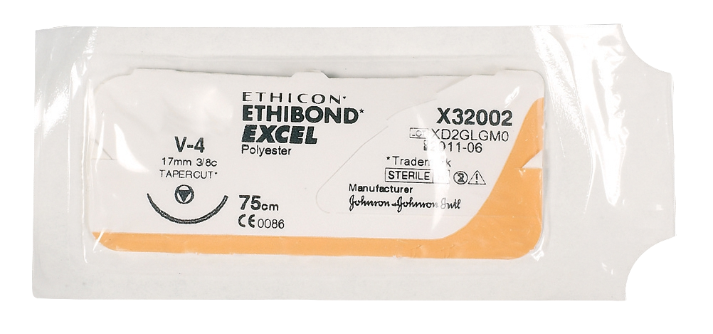 La suture Ethibond est traitée au X.P.A (polyadipate de tétraméthylène) qui améliore le glissement du fil dans les tissus délicats sans altérer les propriétés mécaniques et physiques de la tresse.