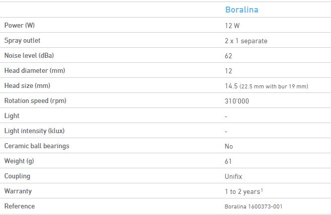 Le Turbine Boralina offre une meilleure qualité et une durée de vie plus longue. C'est une version simplifiée de la turbine Bora, sans lumière et avec 1 spray.