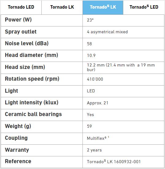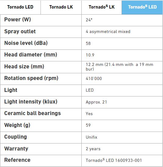 La turbine Tornado S est spécialement conçue pour les procédures dont l'accès est le plus limité.